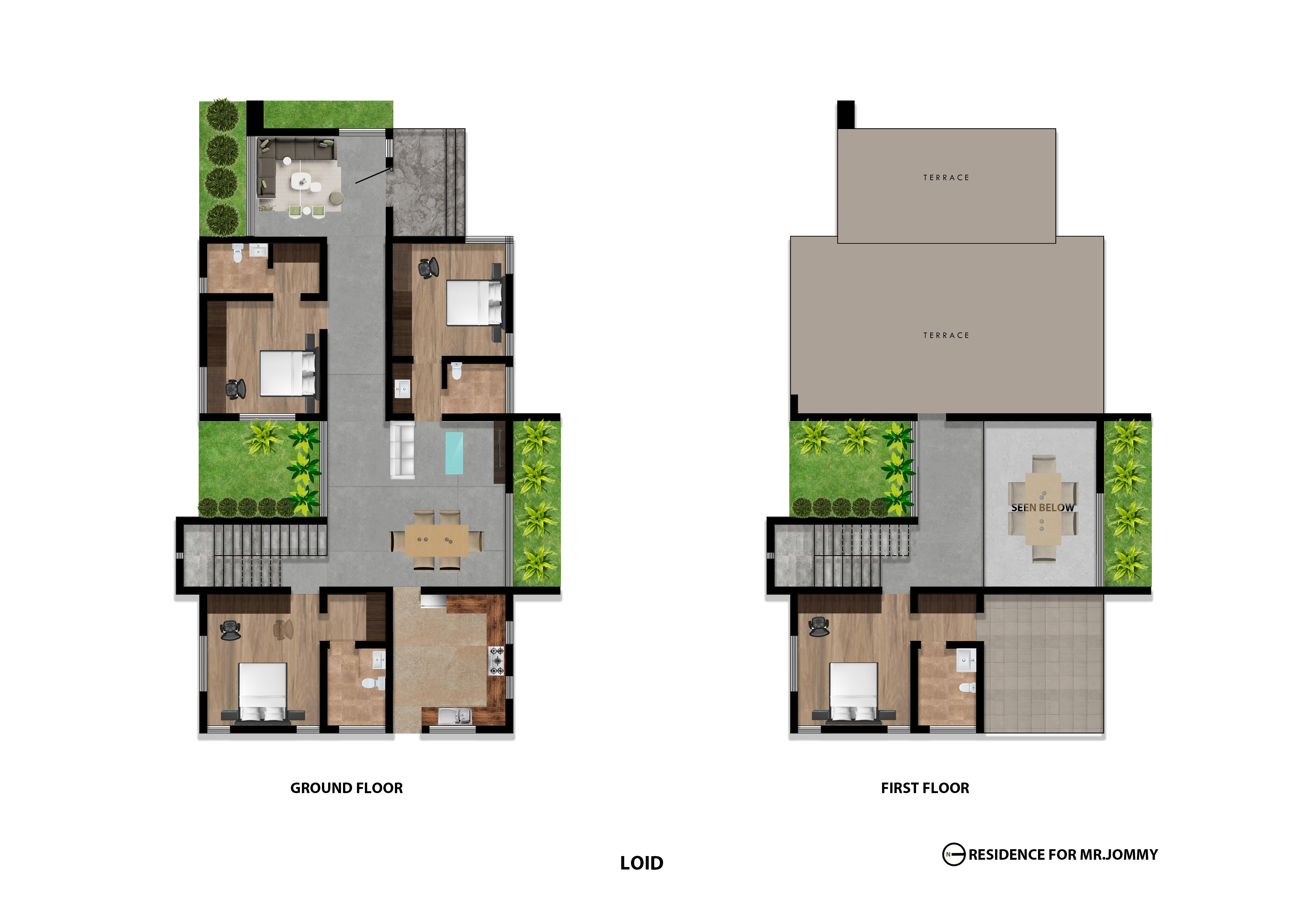 Location - Nellickal, Pathanamthitta REQUIRMENTS - * 2 storeyed residence * Living * Informal living * Dining * Kitchen with work Area * 3 bedrooms with attached bathrooms * Courtyards STYLE - Contemporary
