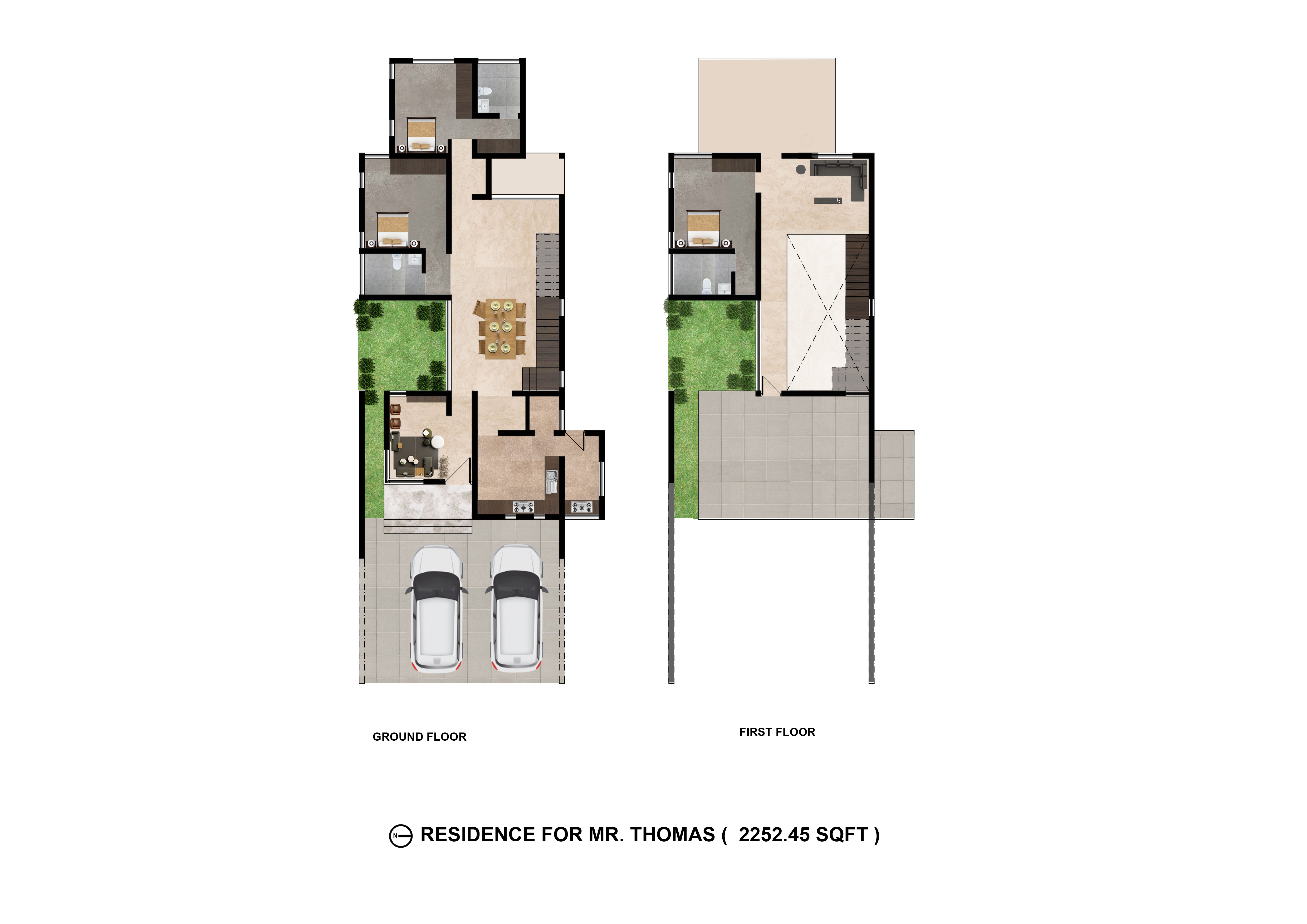 LOCATION - Kurichy, Kottayam____ REQUIRMENTS - * Formal living * Dining * kitchen with work area * 3 bedrooms with attached bathrooms * Courtyards__________________________ STYLE - Contemporary
