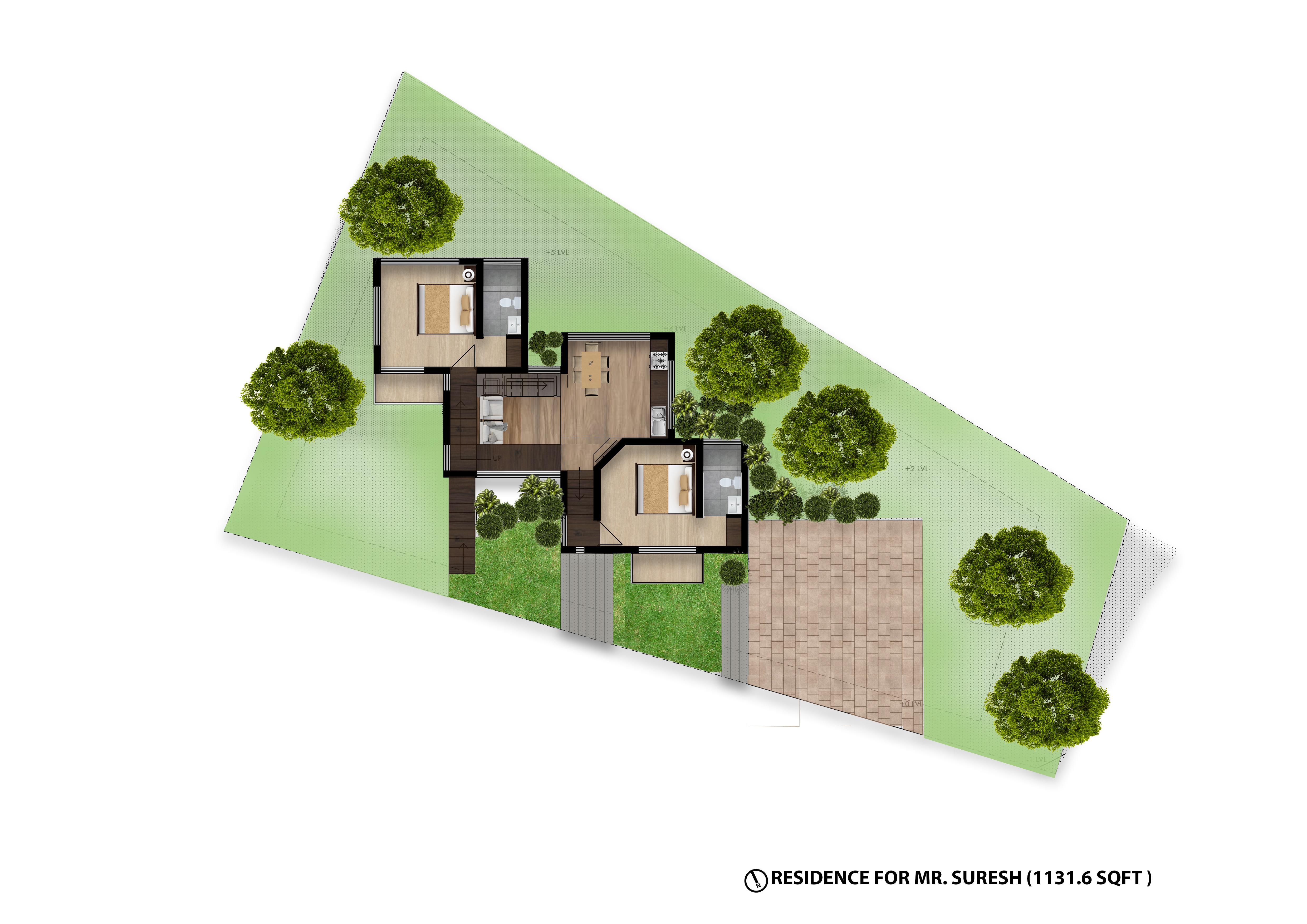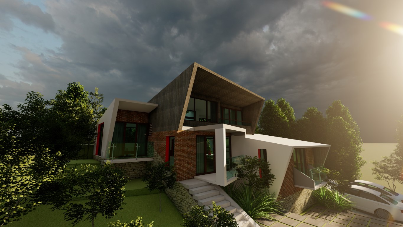 LOCATION : Parunthumpara, Idukki REQUIREMENTS : * 2 Bedrooms with attached toilet. * Kids Mezzanine deck. * 5 Seater living room. * Single counter Open kitchen. * 6 Seater Dining * Open Layout * Balcony____________________________ STYLE : Deconstructivism